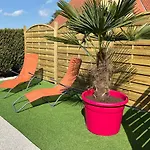 Un coin repas extérieur avec une cafetière/théière sont à la disposition des clients. La cuisine est également équipée de micro-ondes, d'un réfrigérateur et de verrerie. L'aéroport du Touquet-Côte d'Opale est à 39 minutes de route de cette villa.